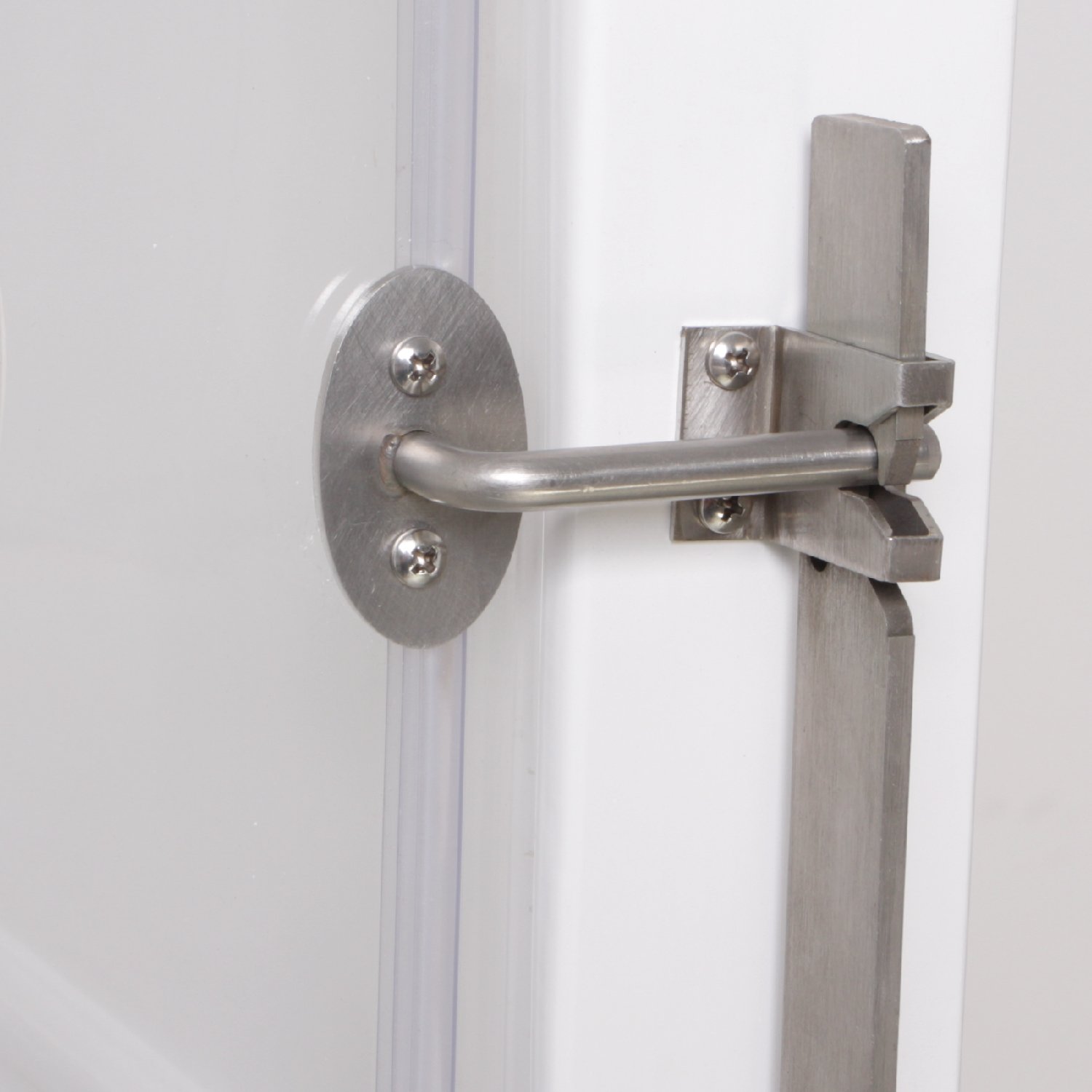 - Έρχεται στάνταρ με πόρτες διπλού σημείου που μανδαλώνουν μόνες τους. Στενή απόσταση ανοχής μεταξύ της κατακόρυφης ράβδου και του ανοίγματος του μάνταλου